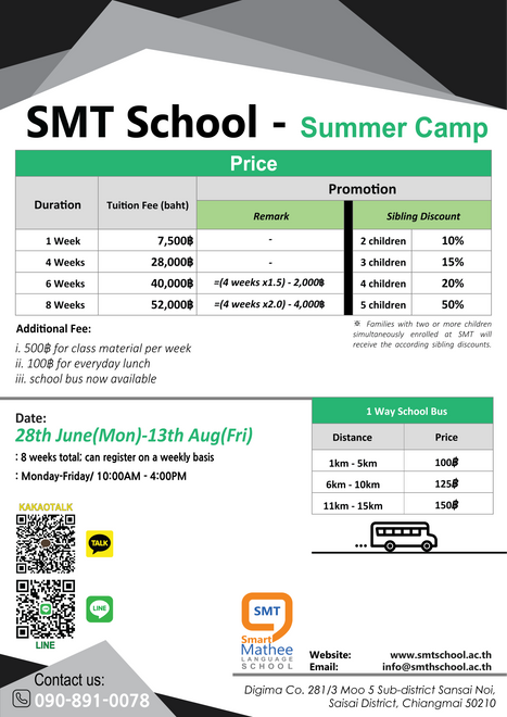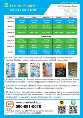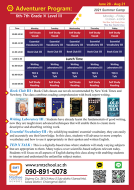 it is possible to provide free of charge with various textbooks for each level composed based on classes targeted at SMT English Camp students. In addition, if here are textbooks that parents and students want, we also provide customized classes using those materials.